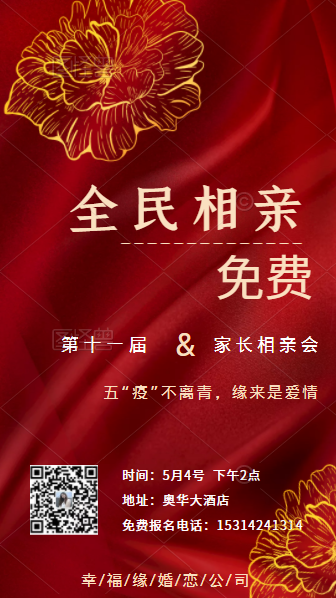 疫情期间,积极响应国家号召,就地过节,值此五一假期来临之际,幸福缘婚恋公司为回馈社会,特开展免费线下相亲活动。